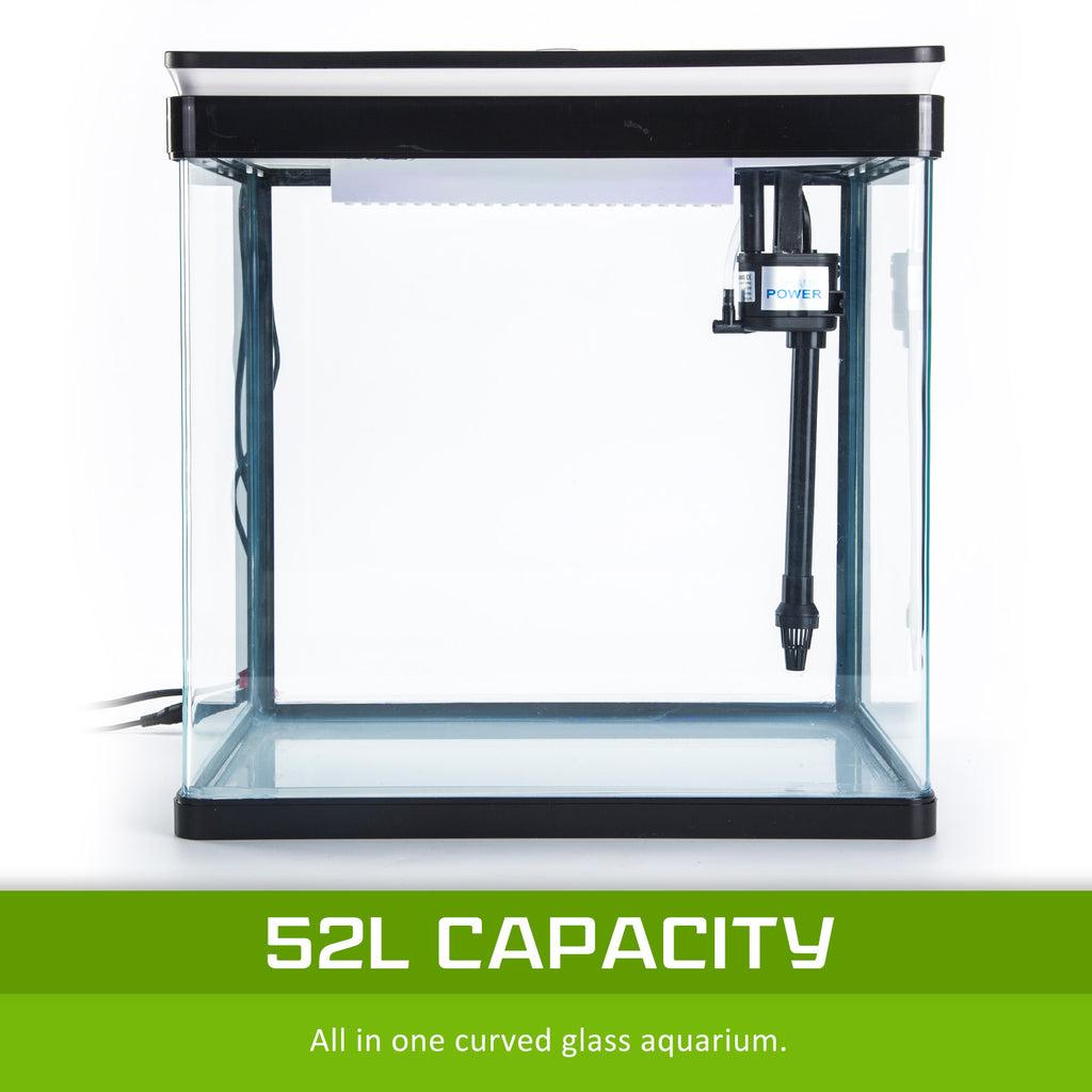 - Capacity of 52L all in one Curved Glass aquarium fish tank