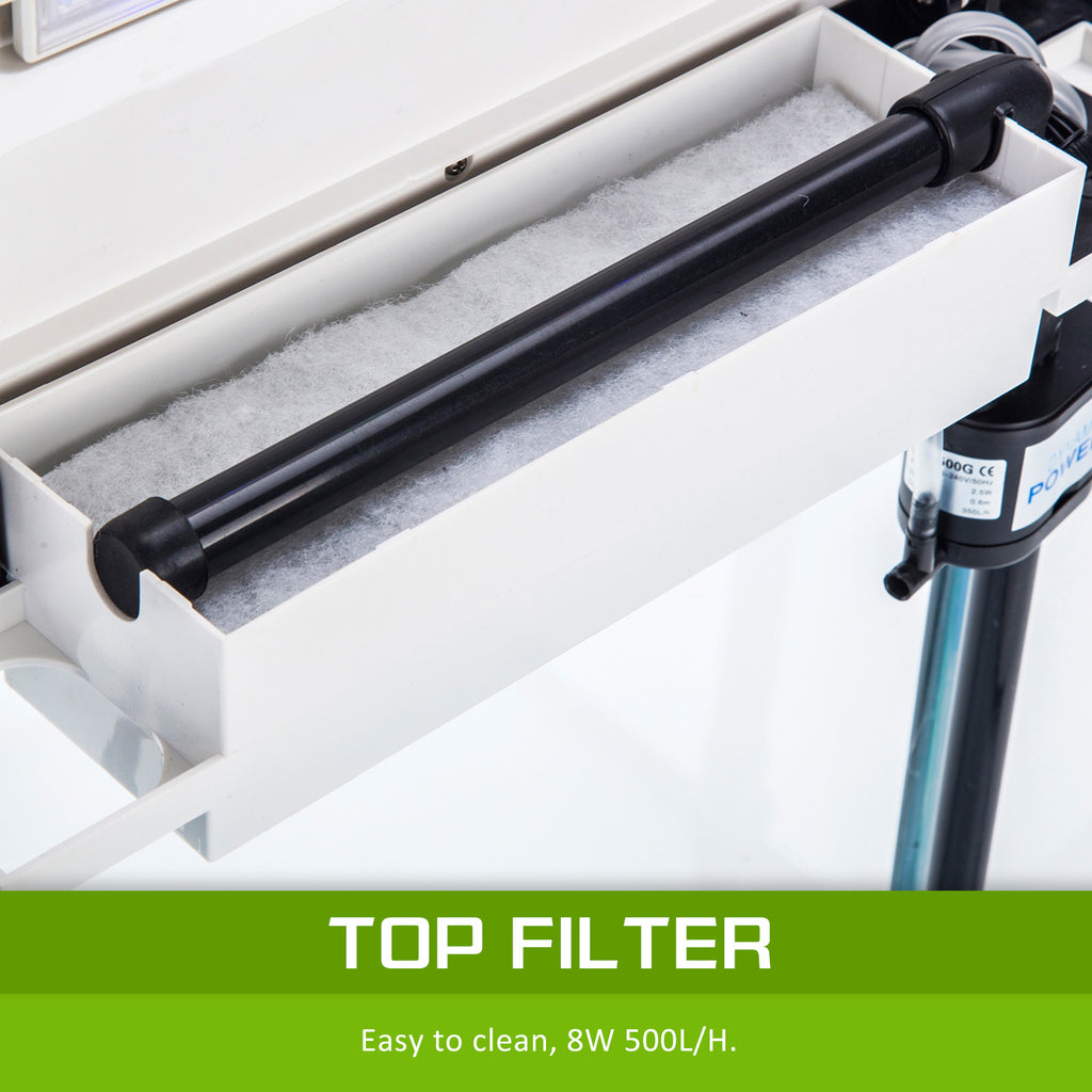 - 8W 500L/hr flow water pump with water filter with very quiet compressor and low vibration to keep your environment comfortable