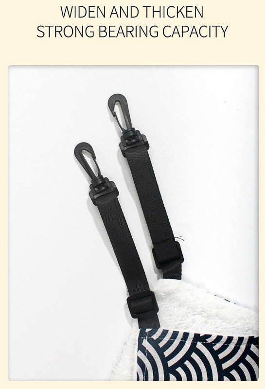 Provide your cat with a cozy and versatile resting spot using this Cat Cage Hammock. Designed with a double-sided structure, this hammock features a soft, plush side for warmth and a breathable fabric side for comfort, making it suitable for all seasons. The adjustable straps with sturdy hooks allow for easy installation inside pet cages, on cat trees, or other suitable surfaces, offering a secure and elevated lounging area for your feline friend.